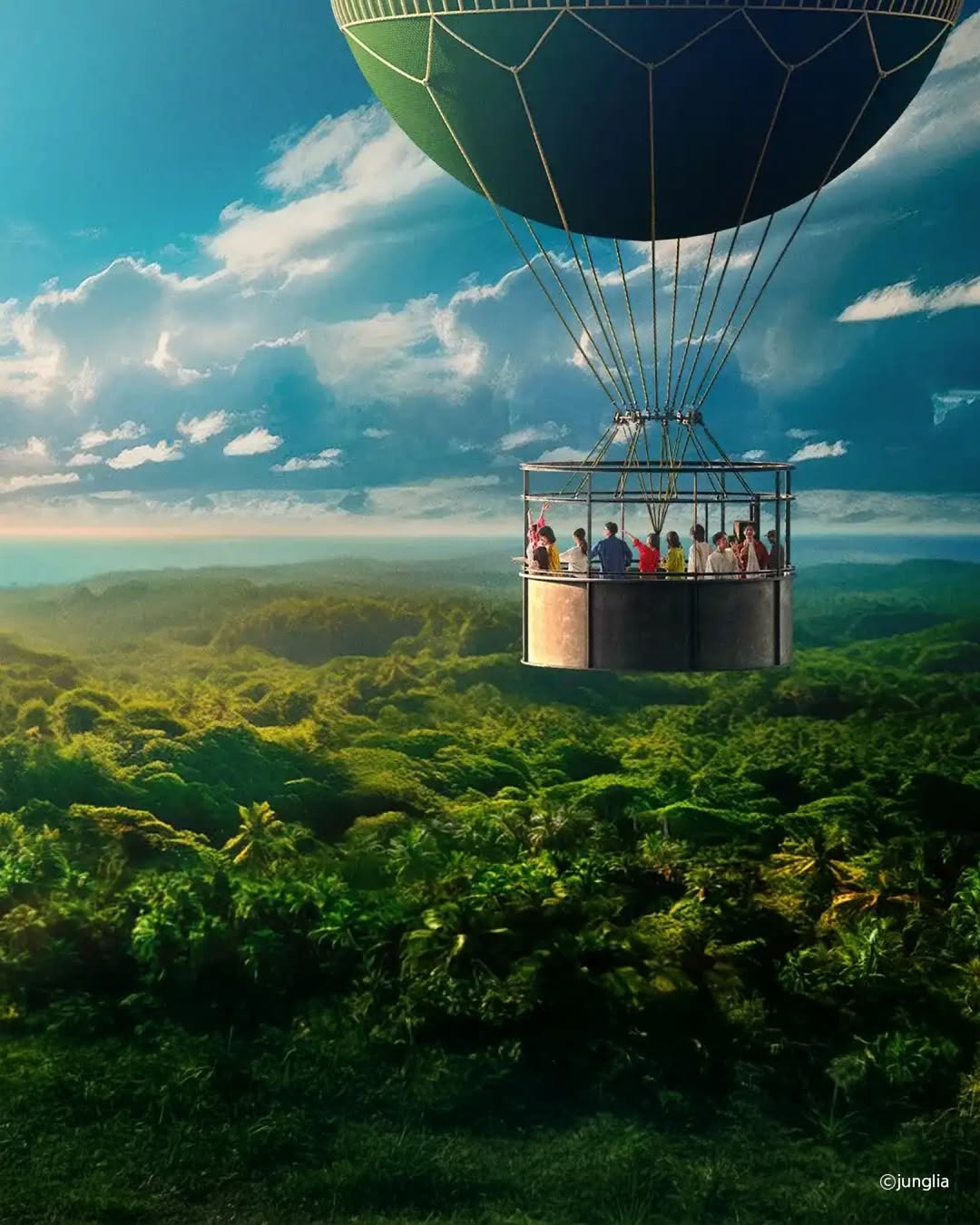 날씨가 좋은 날엔 열기구를 타고 정글리아를 하늘 위에서 감상할 수 있어요. 오키나와 바다와 정글이 한눈에 들어오는 풍경은 가족 모두에게 잊지 못할 추억이 됩니다.